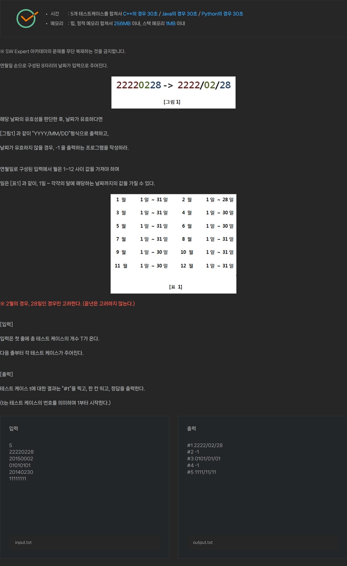 [SWEA/Java] 2056. 연월일 달력(D1)